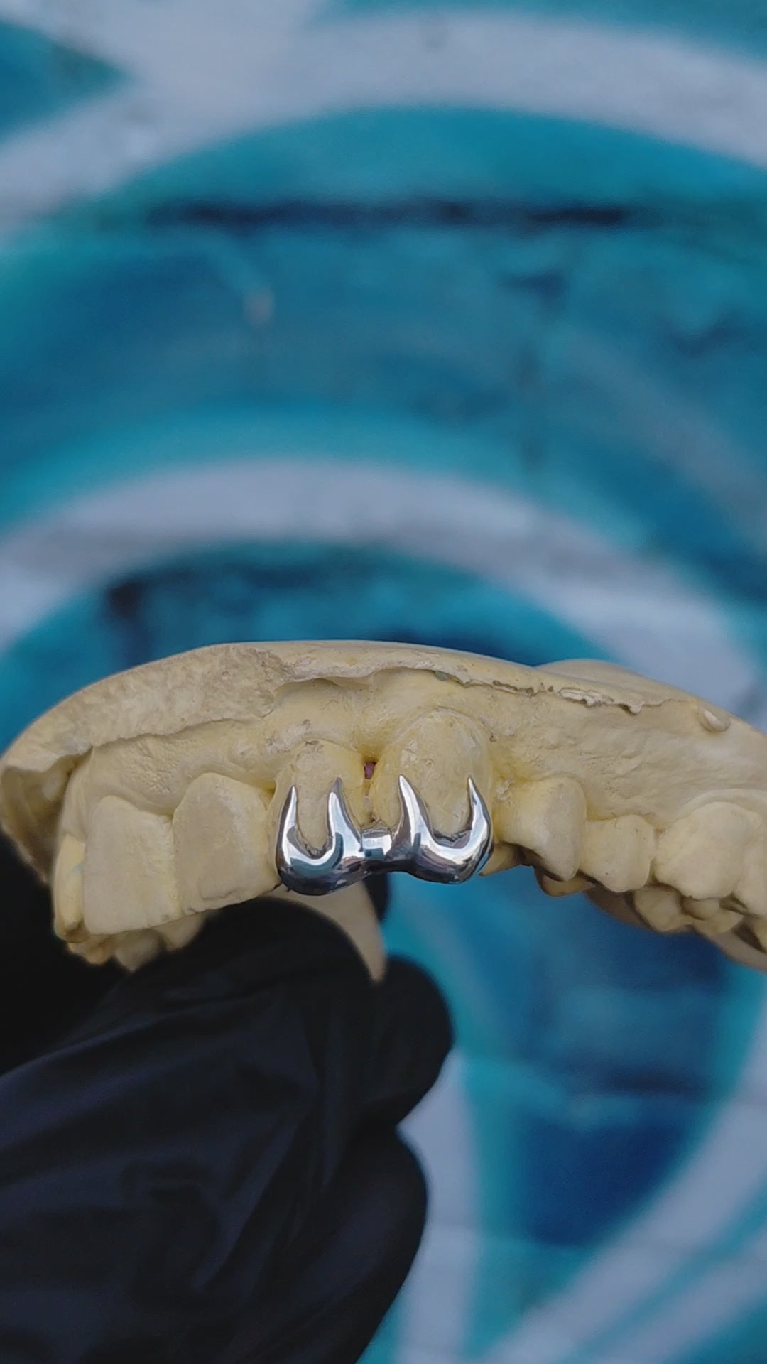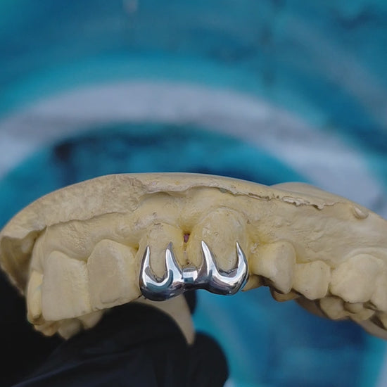 Custom made spiked double cap grillz in 925 sterling silver. Available on your teeth of choice, top or bottom row